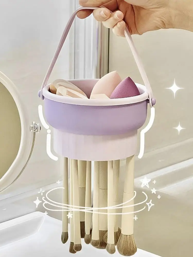 Diseño flexible: el inteligente diseño dos en uno permite almacenar, limpiar y secar brochas de maquillaje. Se puede colocar en la encimera o colgar boca abajo.