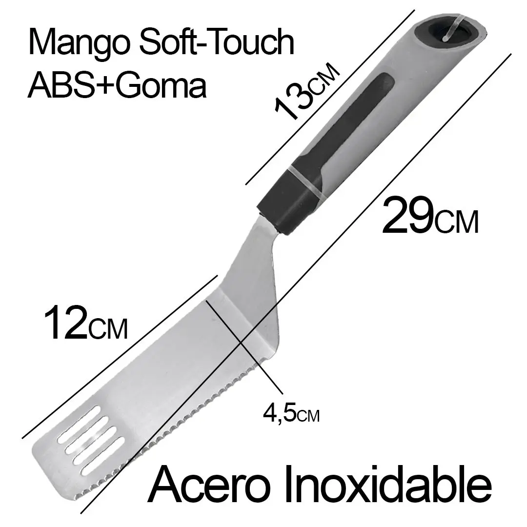 ESSENCIA - Espatula Parrilera Dentada con Mango de Goma