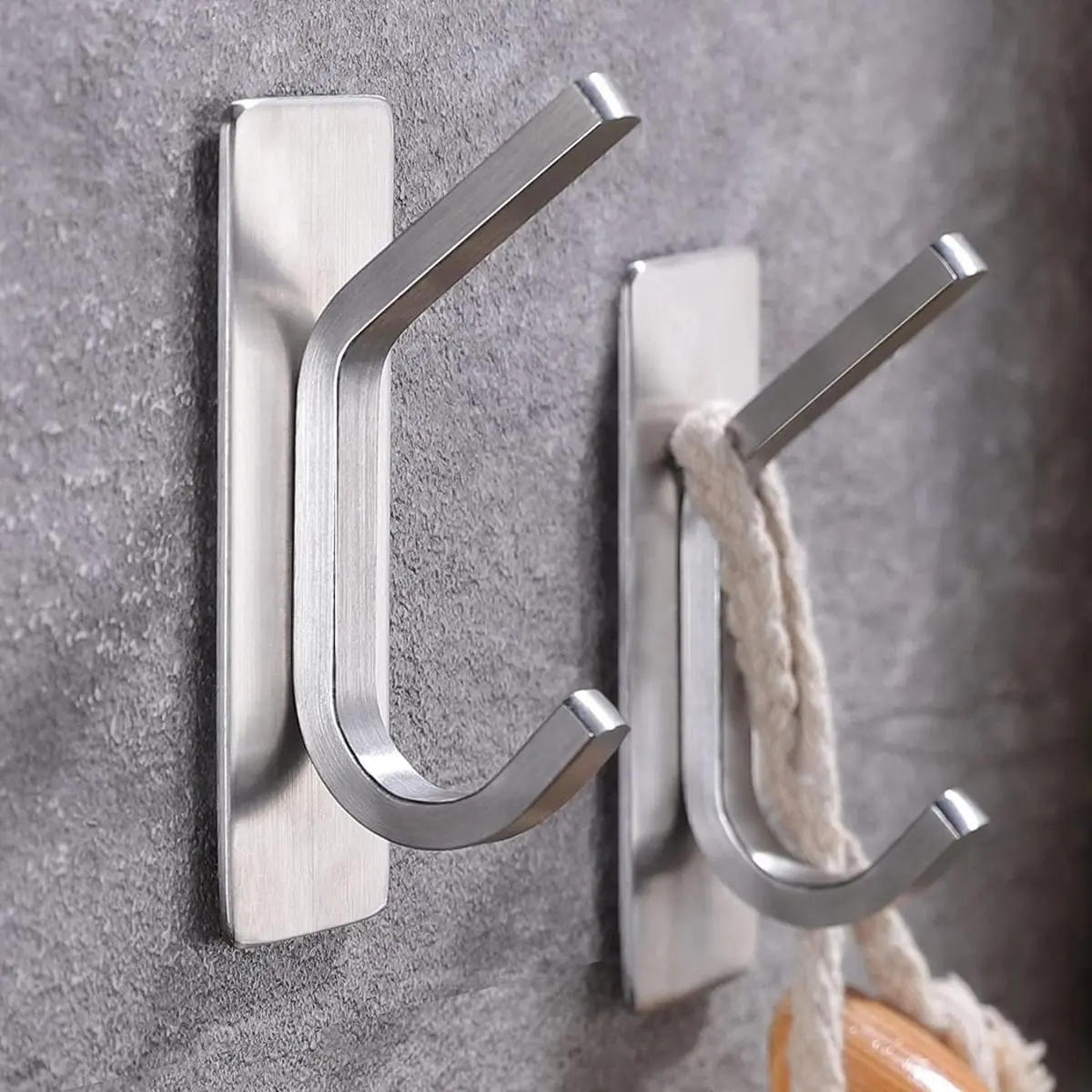 Gancho Perchero Doble Autoadhesivo Metalico x4