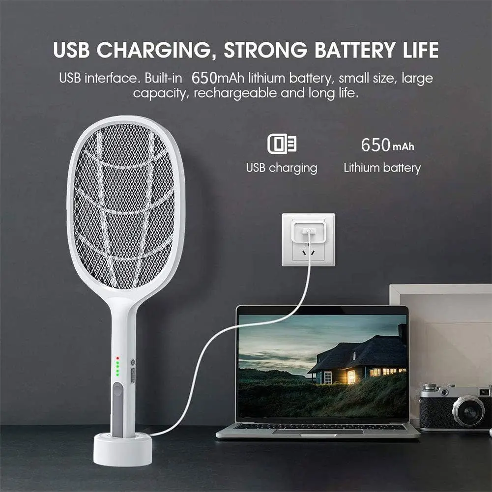 Una raqueta eléctrica que mata moscas, mosquitos y otros insectos fácilmente, basta con un solo movimiento.