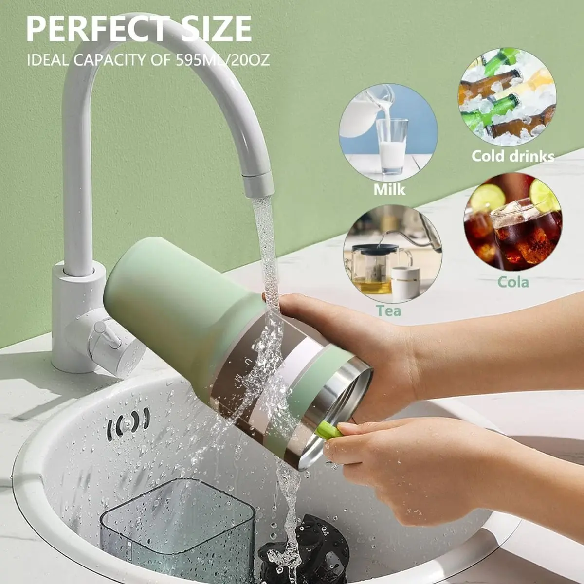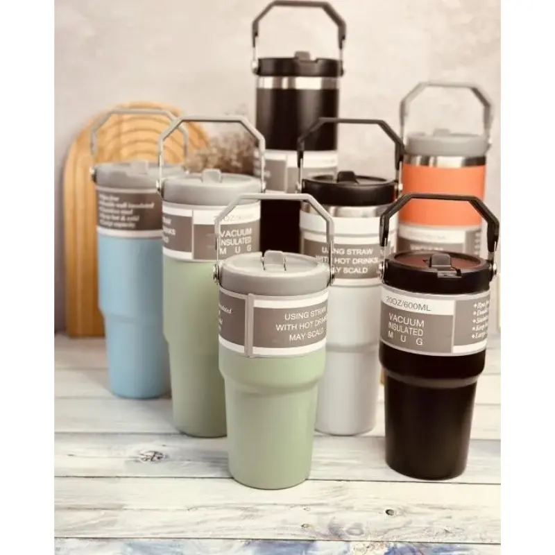 Vaso Termico Acero Inoxidable Plastico Rosca Manija 600ml